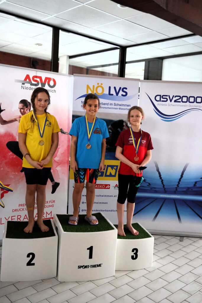 Auch Sophie Jurik, Paulina Druml und Amelie Riedl gingen für den ASV2000 an den Start und kämpften sich durch anspruchsvolle Rennen über Rücken-, Brust- und Freistildistanzen.